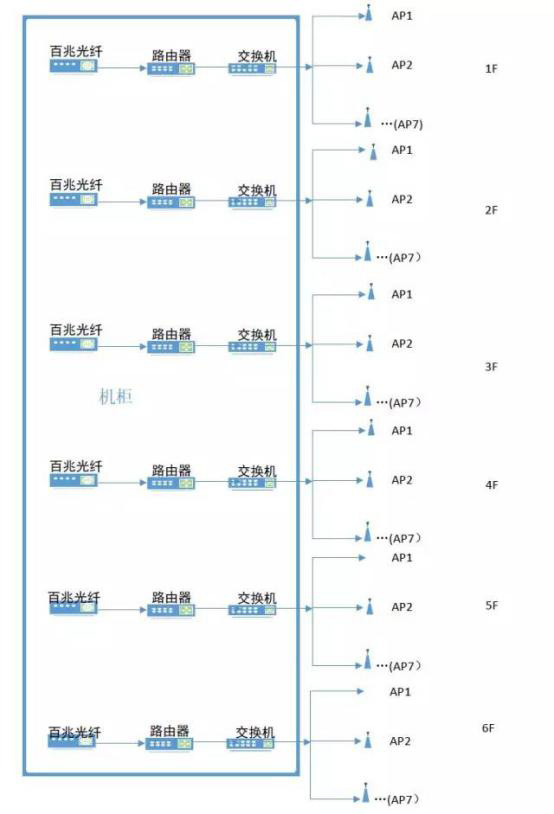 每个楼层一条百兆光纤,为本楼层两百多学生提供高速宽带接入。